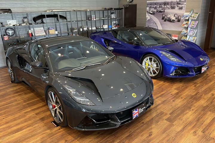 ショールームではロータス エミーラ、エレトレ、エメヤの即納新車を初めとした